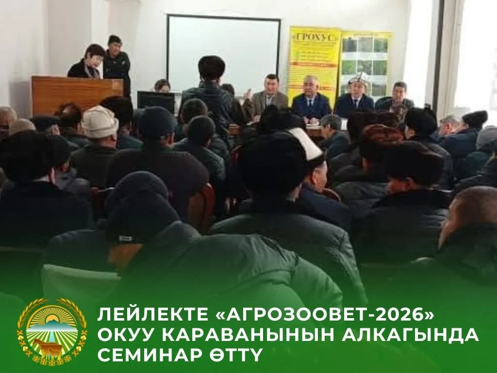 17 января в Лейлекской районной государственной администрации прошел обучающий семинар в рамках каравана «АгроЗооВет–2026». Это мероприятие было организовано Министерством водных ресурсов, сельского хозяйства и перерабатывающей промышленности Кыргызской Республики.