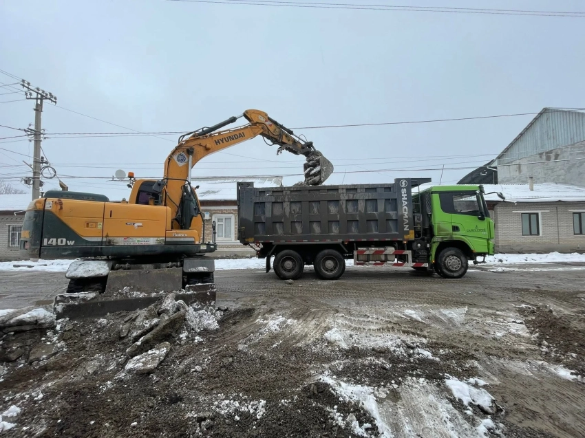 По информации, предоставленной мэрией, в текущий момент задействованы 4 экскаватора и 6 единиц техники марки Shacman.