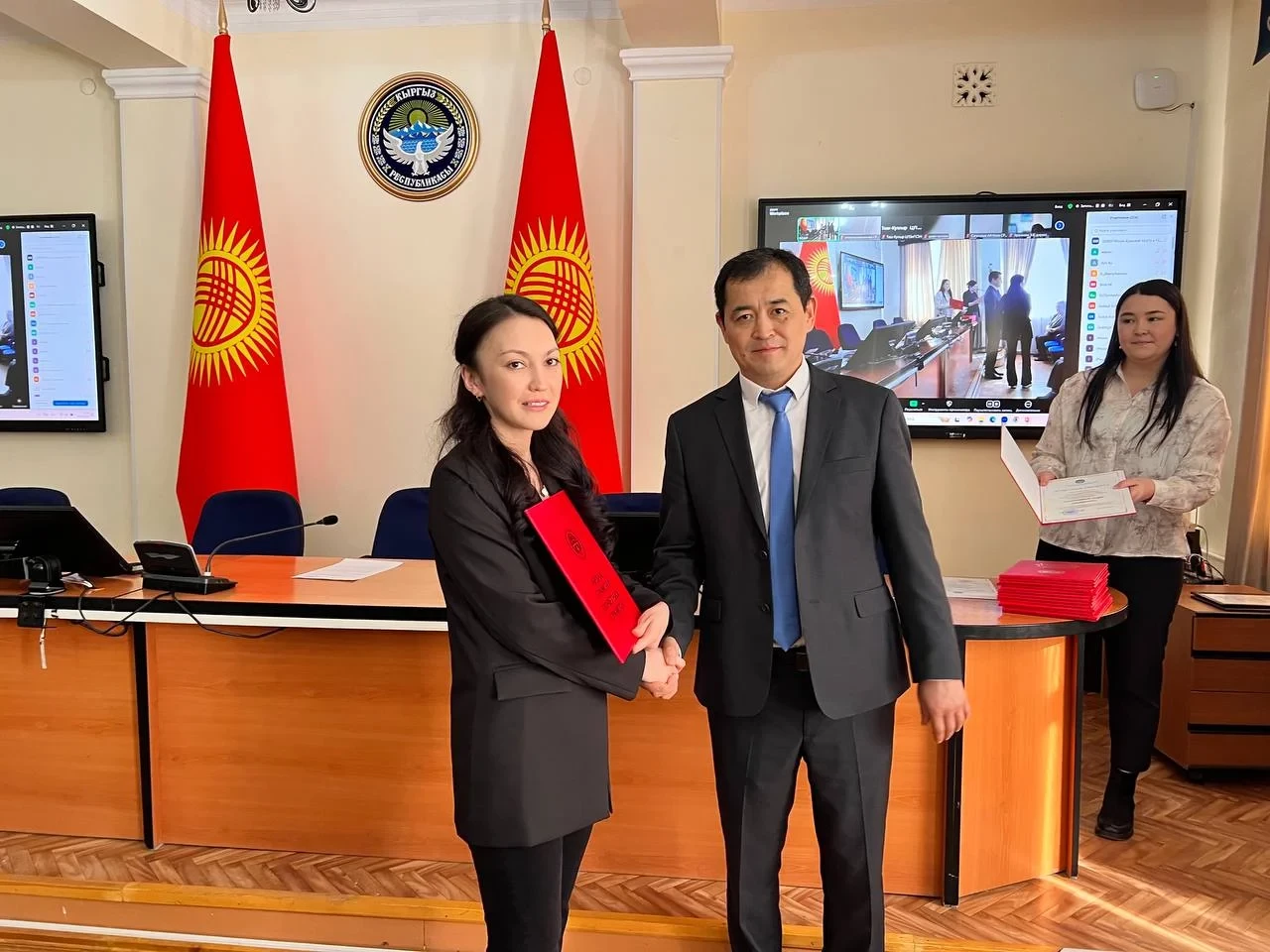 Как сообщили в ведомстве, награды были вручены сотрудникам Научно-исследовательского института хирургии сердца и трансплантации органов, которые дежурили в тот день, а также медицинским работникам Национального центра кардиологии и терапии.