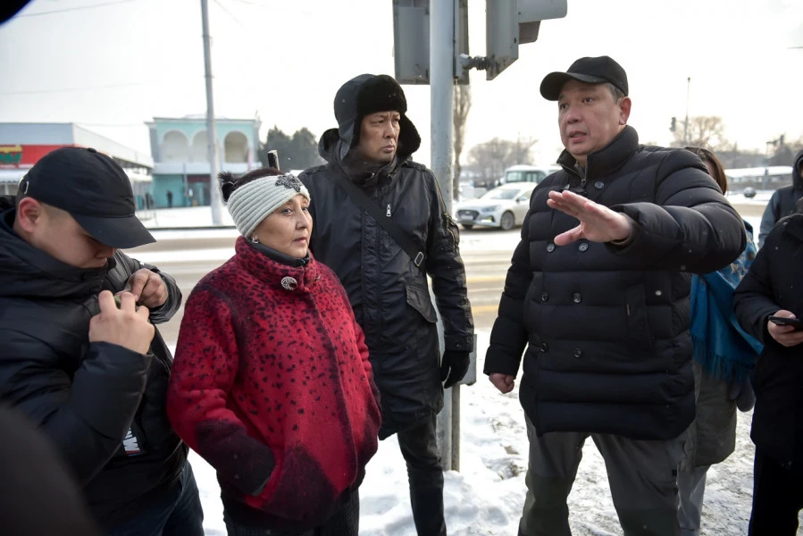 В Бишкеке мэр Айбек Джунушалиев провел выездное заседание, на котором ознакомился с ходом работ на ключевых инфраструктурных объектах города. Одним из пунктов его визита стал проспект Жибек Жолу, где в настоящее время строится мост через реку Аламедин, как сообщает пресс-служба мэрии.