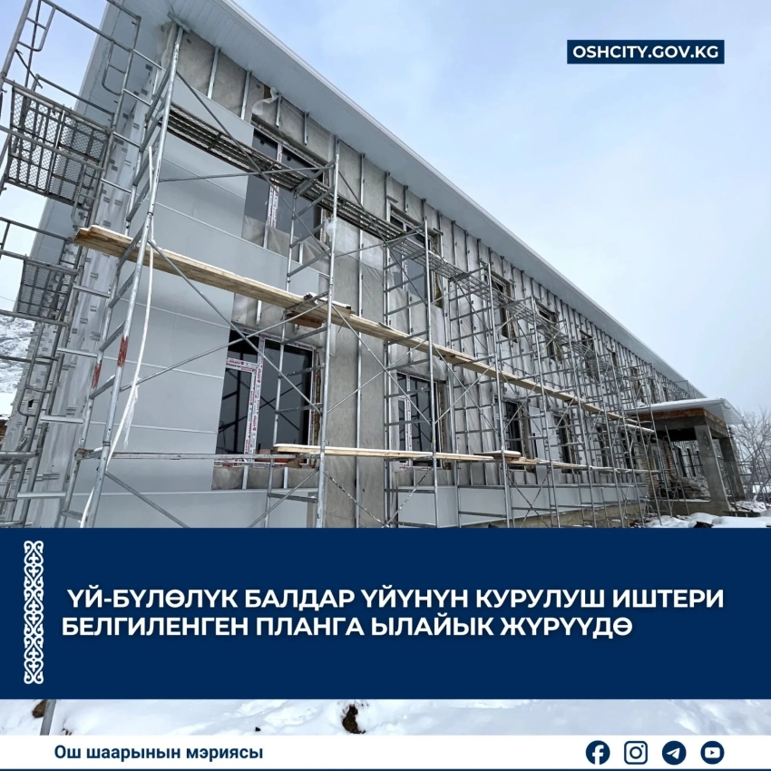 Проект строительства семейного дома для детей-сирот в Оше движется в соответствии с установленным графиком, о чем сообщила пресс-служба мэрии города.