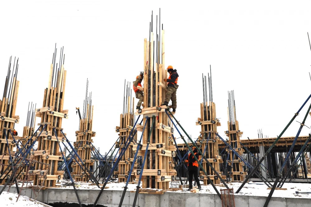 Для выполнения строительных работ привлечены 115 рабочих, а генеральным подрядчиком выступает ГП "Кыргызкурулуш".