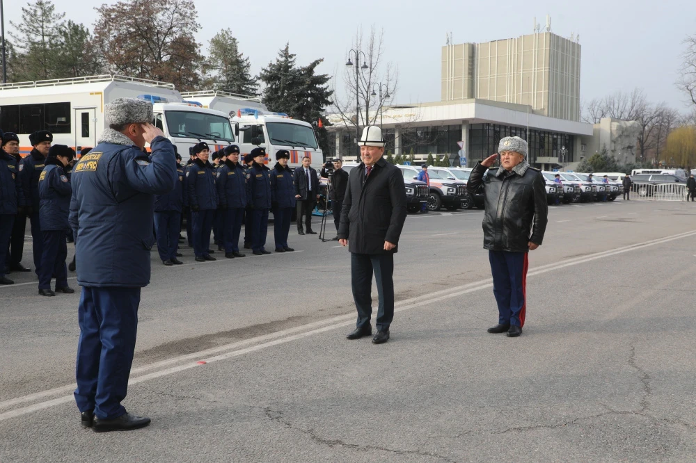 Он отметил, что за последние пять лет ведомству было передано 652 единицы техники на сумму около 7 миллиардов сомов. Передача 116 новых единиц техники была охарактеризована как один из самых значительных этапов модернизации ведомства за годы независимости.