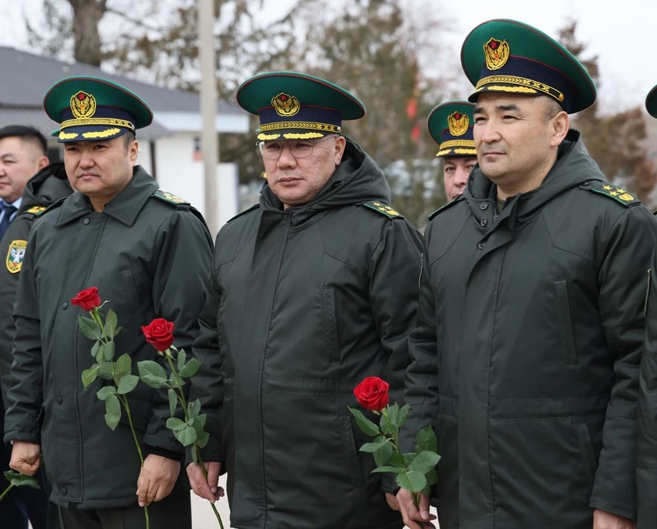 В мероприятии присутствовали такие фигуры, как председатель Госпогранслужбы Абдикарим Алимбаев, а также ветераны и действующие офицеры пограничной службы.
