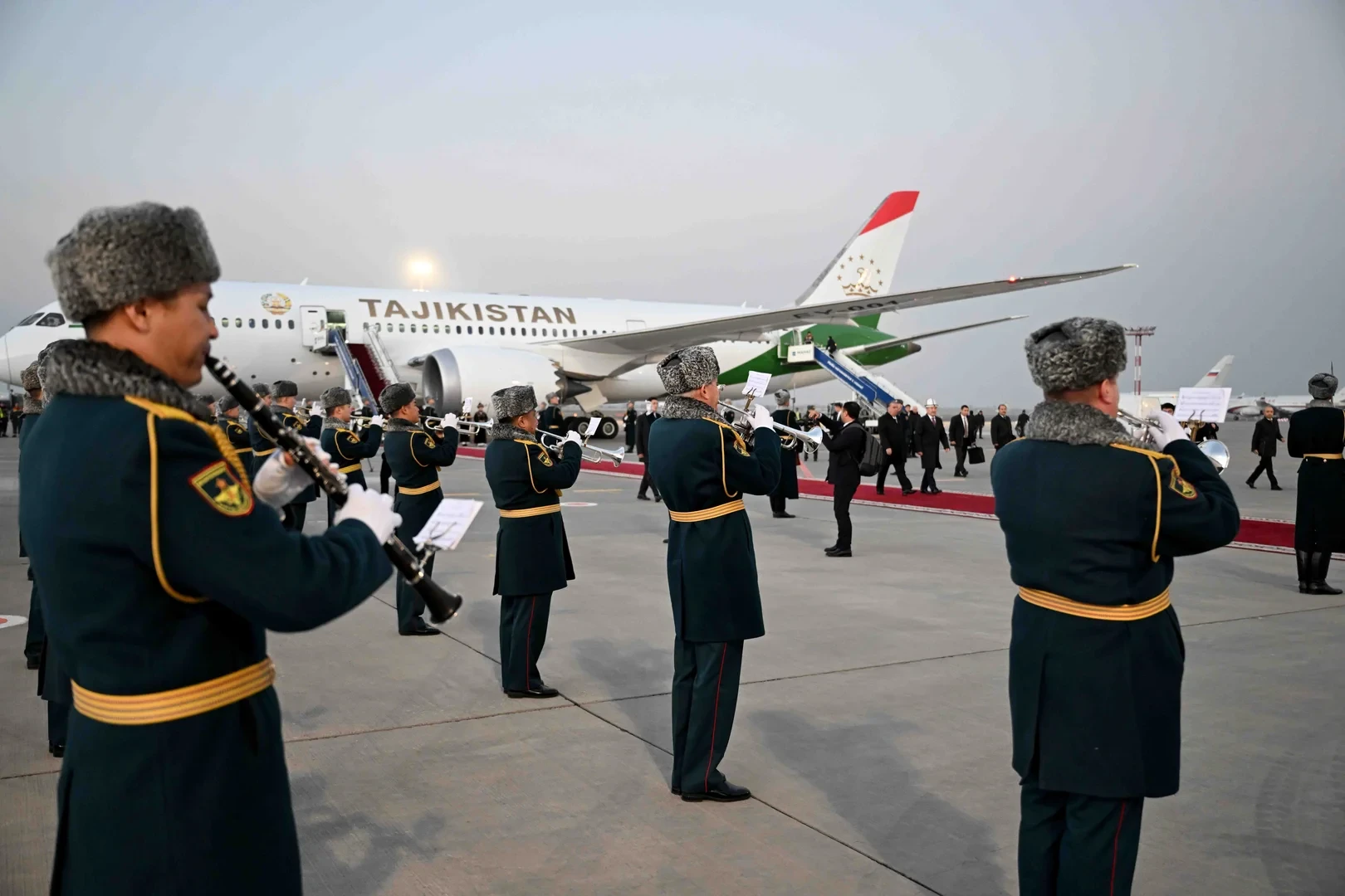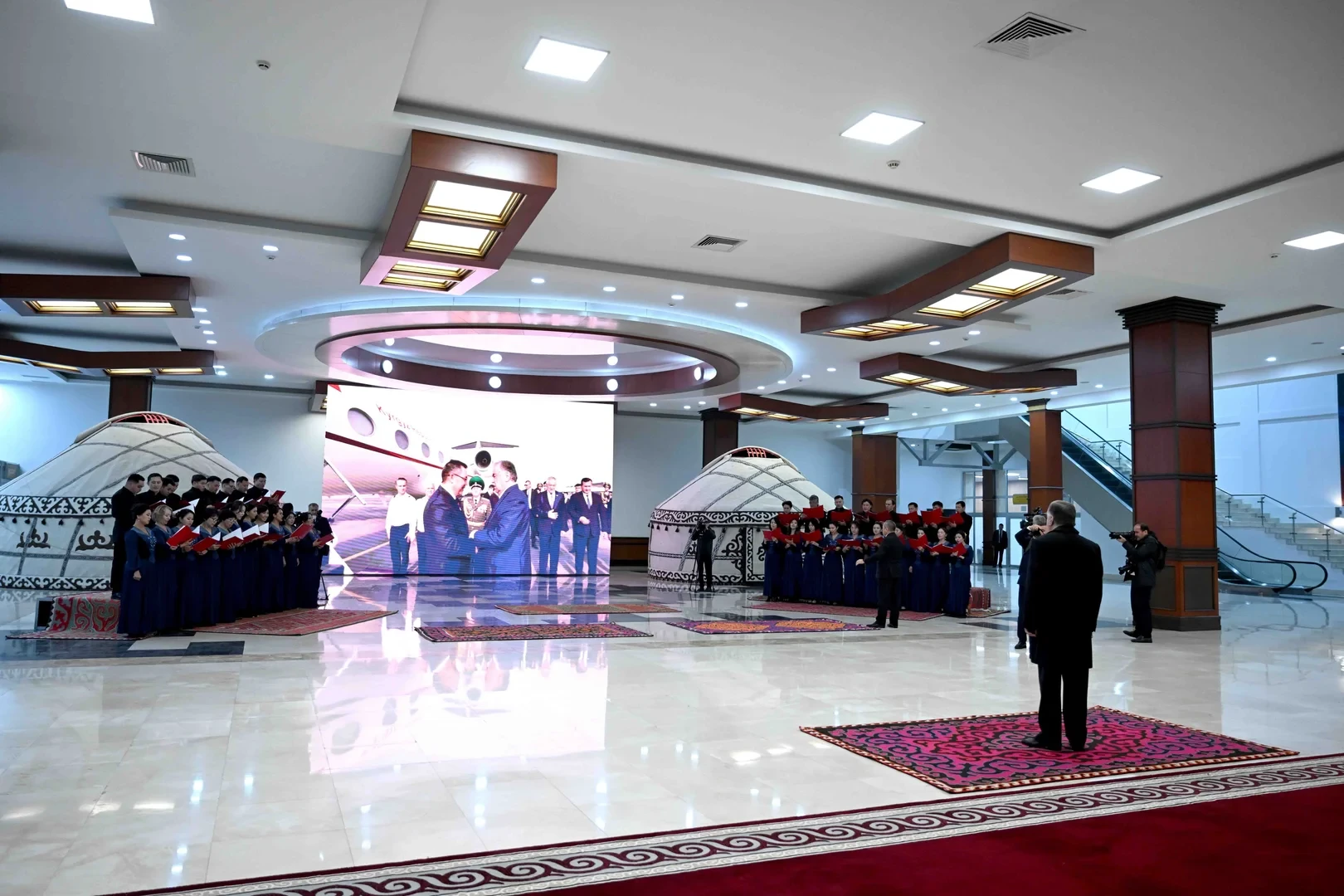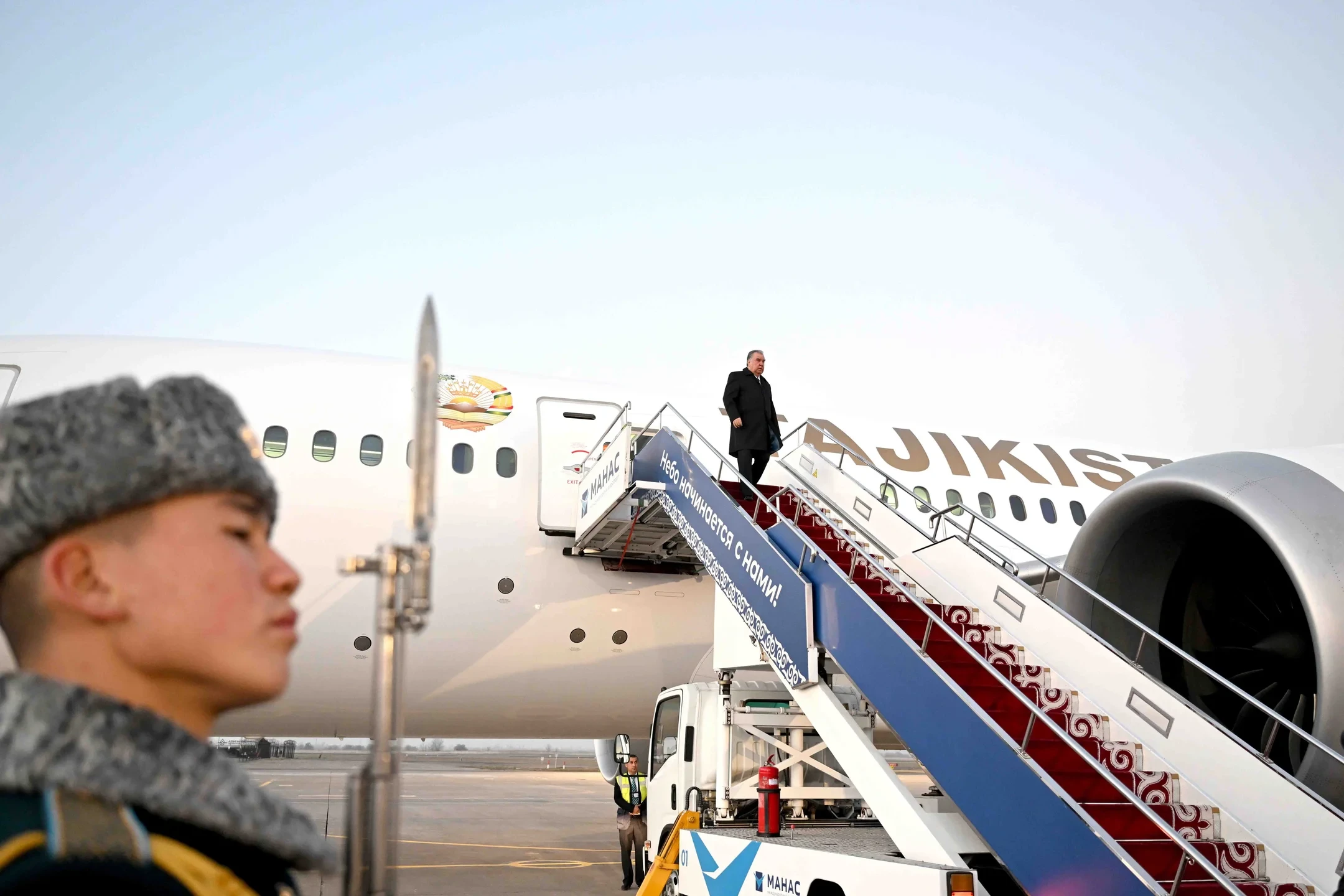 На международном аэропорту «Манас» высокопоставленного гостя встретил председатель кабинета министров и руководитель администрации президента Кыргызской Республики, Адылбек Касымалиев.