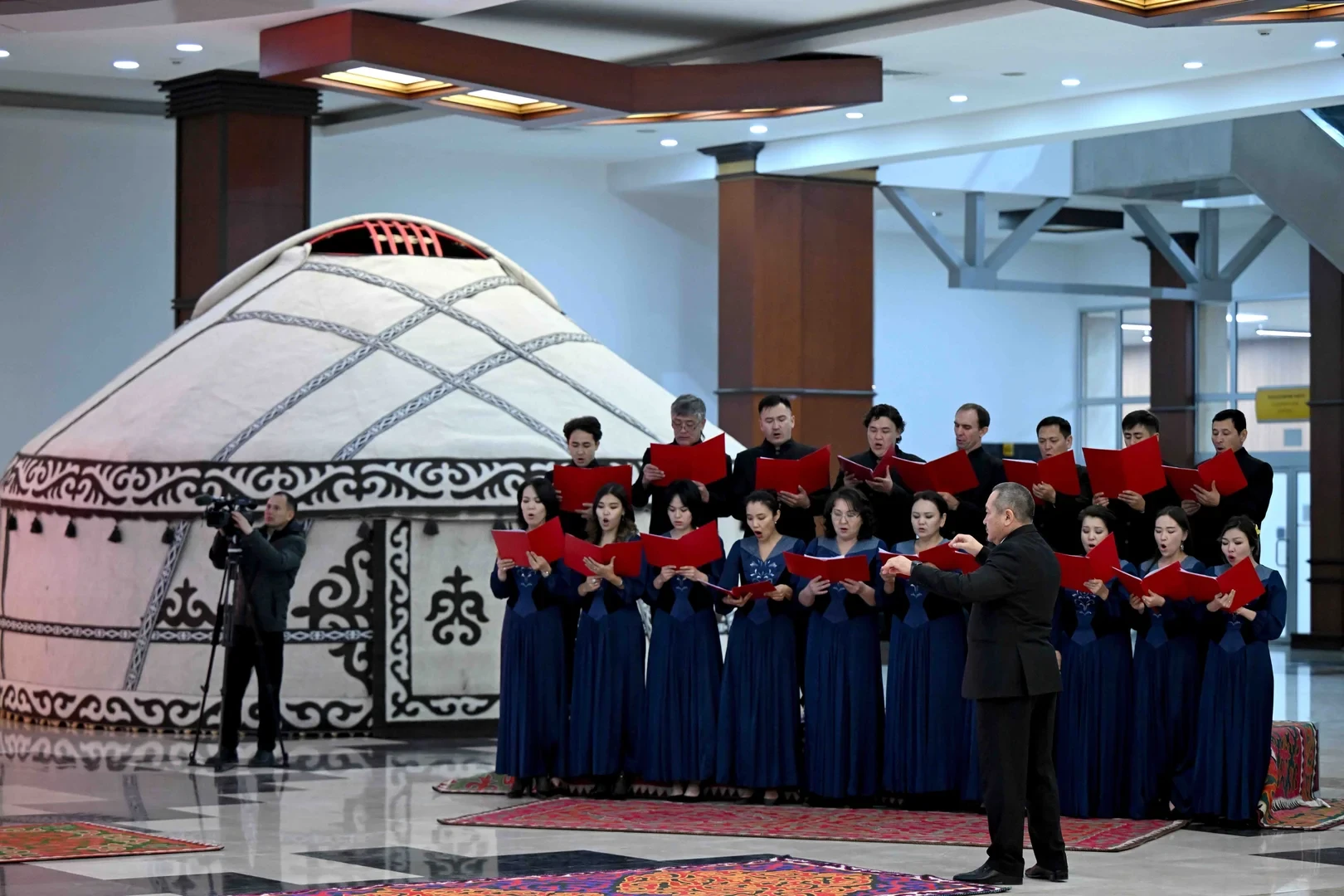Перед президентом разостлали ковровую дорожку и выстроили роту Почетного караула. Также была представлена небольшая концертная программа.