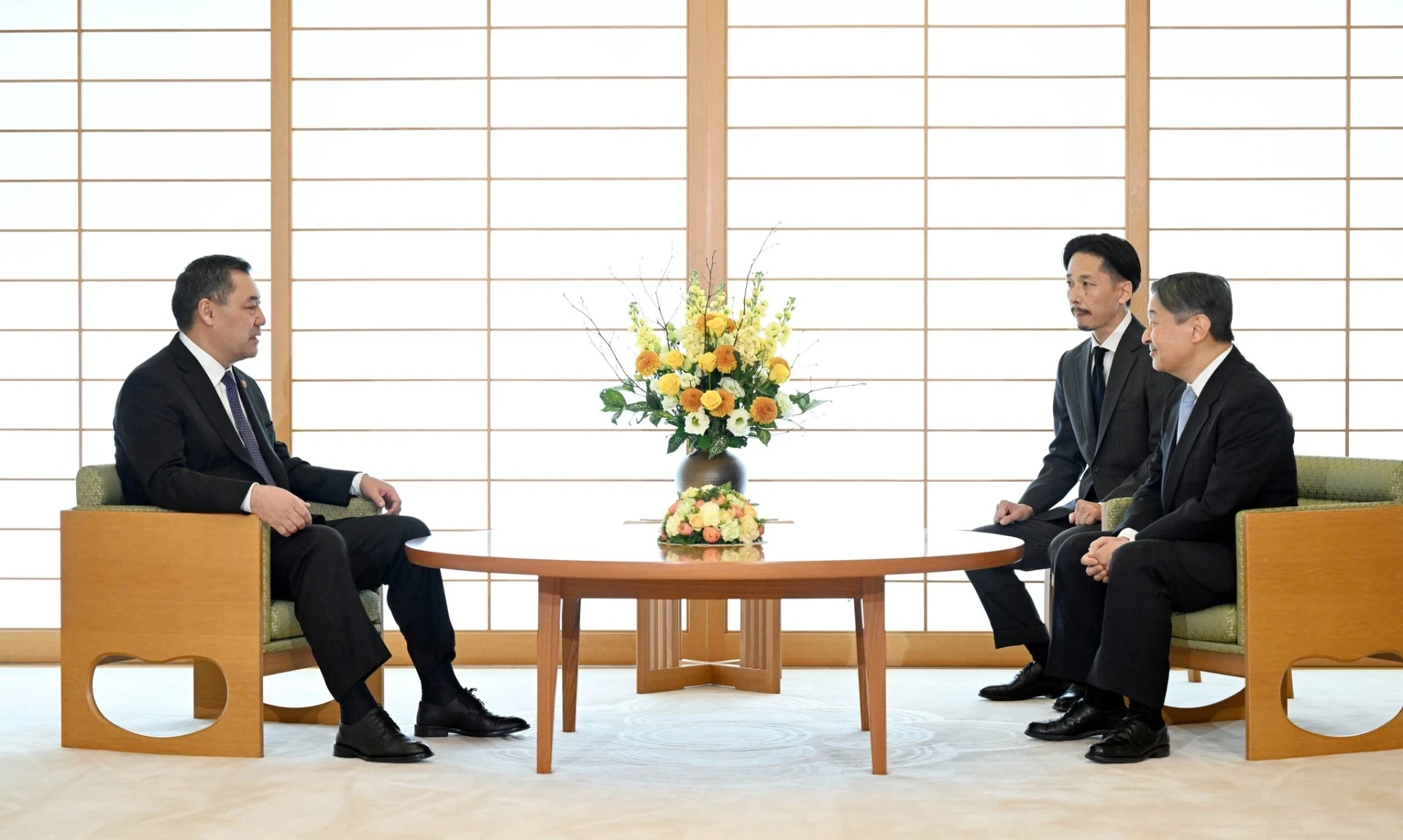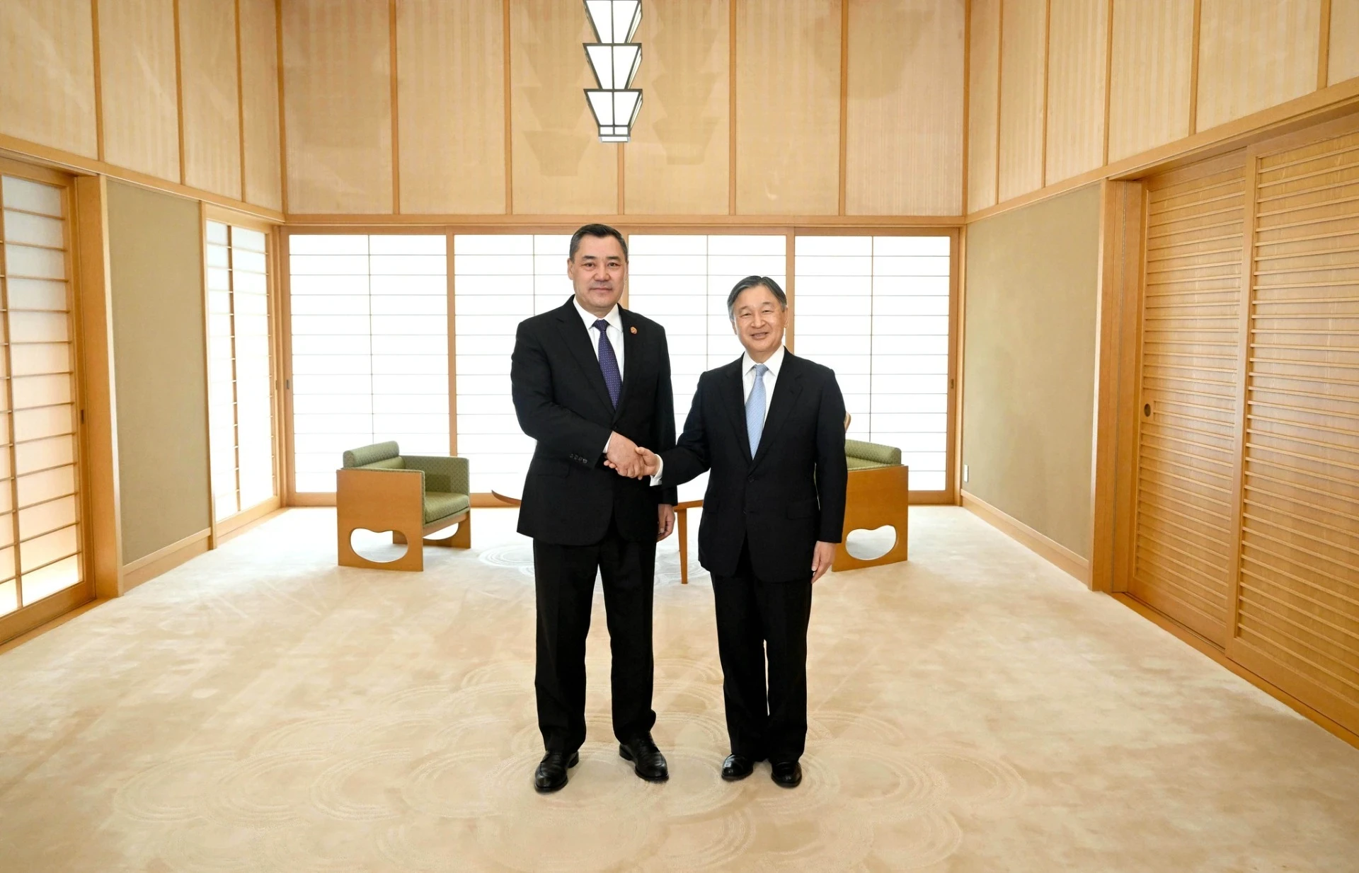 Император Нарухито тепло встретил кыргызского президента, подчеркнув значимость его визита для дальнейшего развития отношений между Кыргызстаном и Японией. Садыр Жапаров отметил, что кыргызский народ испытывает глубокую симпатию к японскому народу и высоко ценит его культурные достижения и традиции.