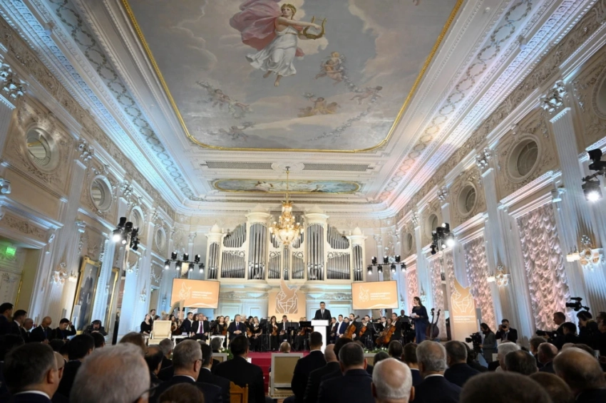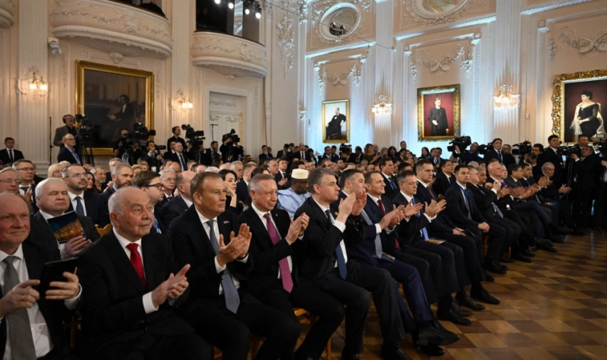 Затем прошла церемония награждения Международной премией мира имени Льва Толстого. В этом году лауреатами стали Садыр Жапаров, Эмомали Рахмон и Шавкат Мирзиёев, которых отметили за вклад в укрепление мира и безопасности в Центральной Азии.