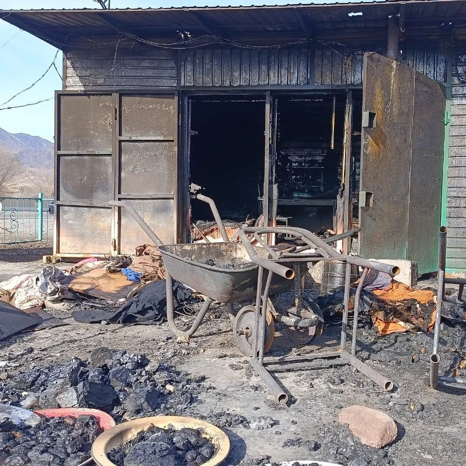 Предварительные данные свидетельствуют о том, что площадь пожара составила около 2 гектаров. В результате инцидента сгорели четыре юрты и два металлических торговых киоска, находившихся вдоль дороги.