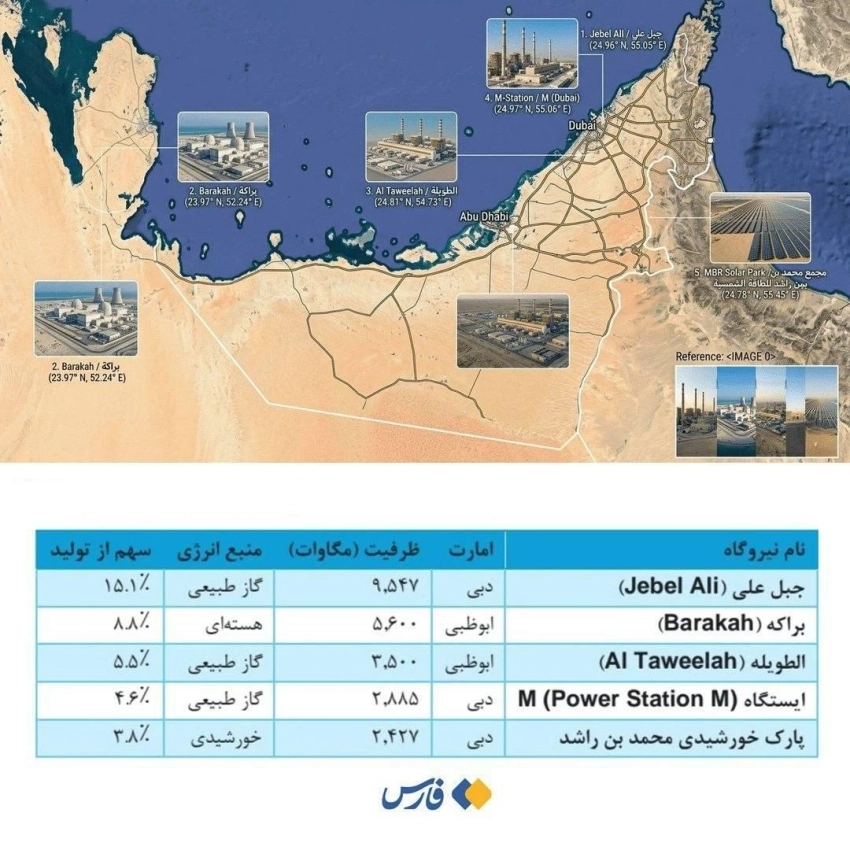 Иранские про-государственные СМИ опубликовали карту энергетической инфраструктуры Объединенных Арабских Эмиратов, на которой указаны ключевые объекты, такие как газовый комплекс Jebel Ali в Дубае, АЭС Barakah, а также электростанции Al Taweelah и M Station, и крупнейшая солнечная станция MBR Solar Park. В случае удара эти объекты будут приоритетными целями. Тегеран также подготовил «беспрецедентные меры» в ответ на возможную поддержку стран региона Соединенным Штатам в наземной операции.