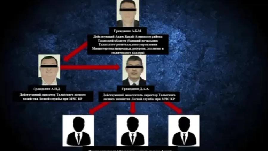 В рамках расследования, проведенного ГКНБ, в Таласской области были задержаны аким Бакай-Атинского района А.Б.М. и директор Таласского лесного хозяйства А.Н.Дж., а также другие должностные лица. В пресс-центре ведомства сообщили о выявленных системных нарушениях законодательства со стороны данных чиновников.