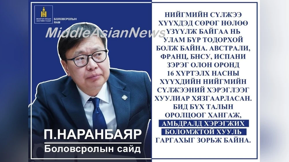 Министр образования Наранбаяр Пүрэвсүрэн опубликовал информацию на своем официальном сайте о том, что министерство намерено разработать законопроект, который будет ограничивать доступ детей к социальным сетям, ссылаясь на растущий объем научных данных о вреде, который они могут причинить молодым пользователям, — сообщает MiddleAsianNews.