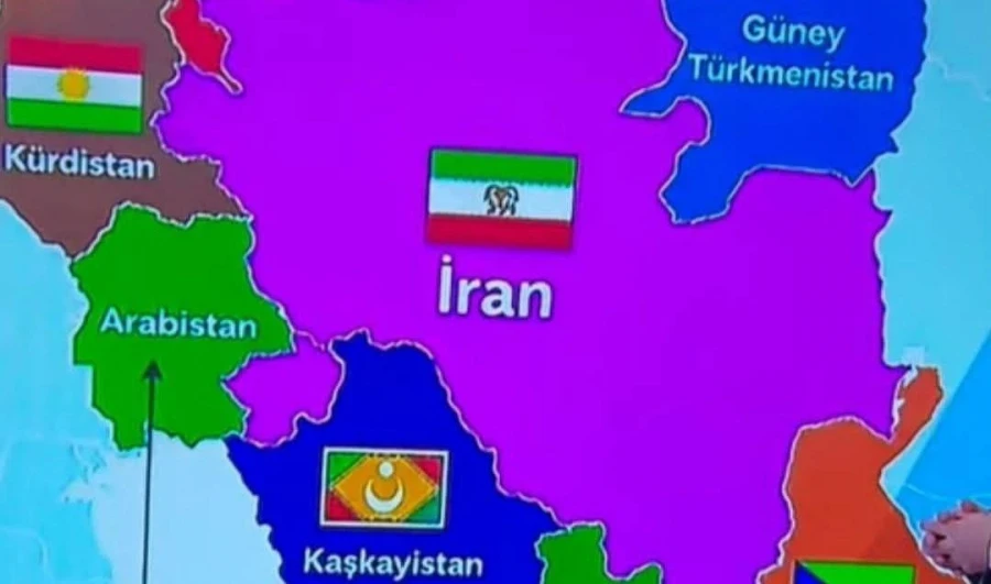 Кроме того, в одной из телепередач, выходящих на турецком канале, была продемонстрирована предполагаемая новая карта Ирана.