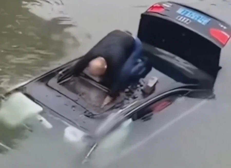 В Китае произошел случай, когда прохожий оказал помощь водителю, который оказался в тонущем автомобиле.