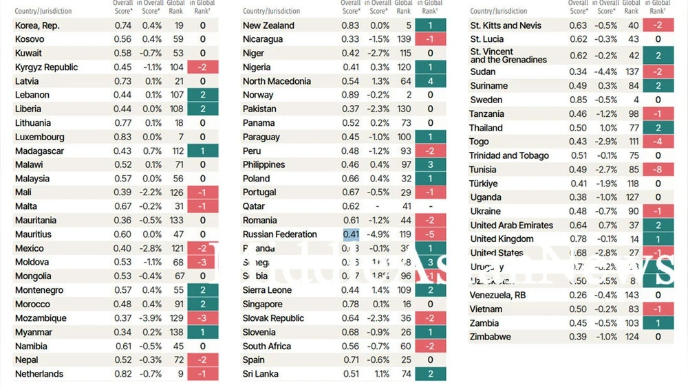 Всемирный проект по справедливости (World Justice Project) недавно обнародовал Индекс верховенства права за 2025 год, который охватывает 143 страны. Основанный на опросах граждан и мнениях экспертов, рейтинг учитывает восемь основных критериев, включая ограничения государственной власти и эффективность правосудия в гражданских и уголовных делах. Каждой стране присваивается балл в диапазоне от 0 до 1, где 1 обозначает полное соблюдение принципов верховенства закона, а 0 — их отсутствие.