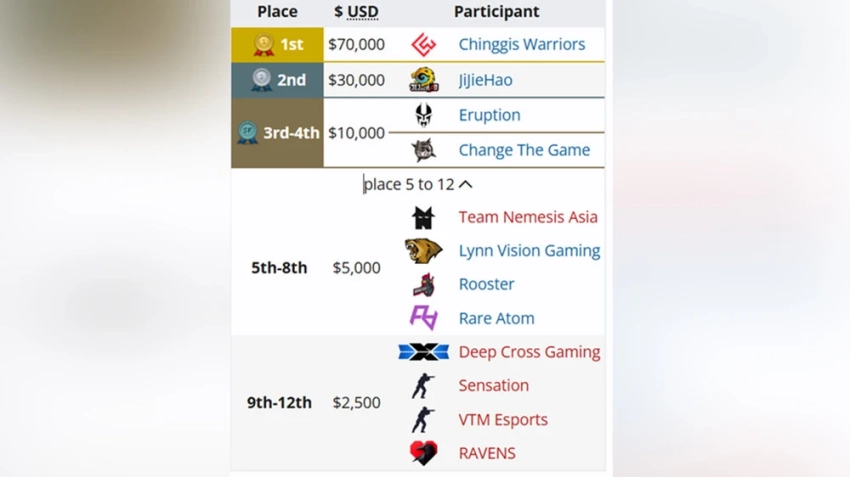 Распределение призового фонда на сумму $150 000 выглядит следующим образом: