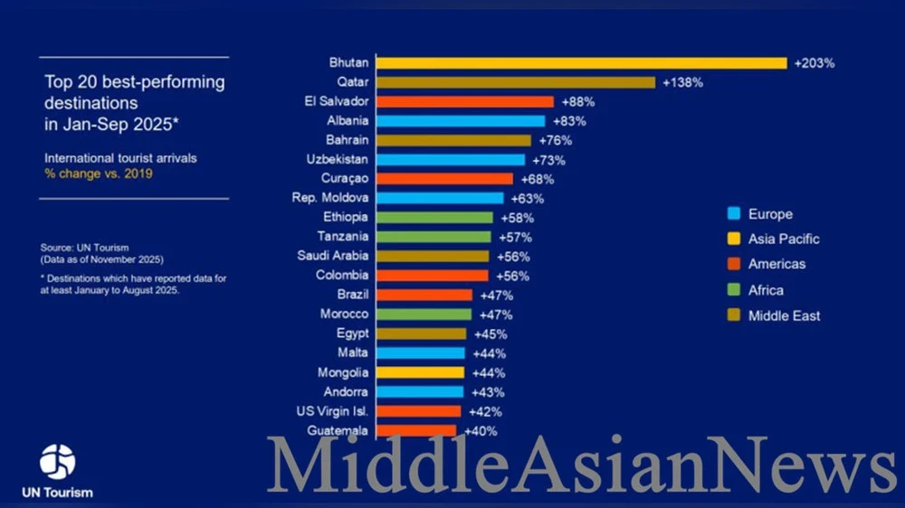 В Северной и Южной Америке отмечен рост на 2% до сентября 2025 года, с увеличением на 3% в первых двух кварталах, но с небольшим снижением на 1% в третьем квартале. В Ближнем Востоке число прибытий увеличилось на 2% по сравнению с аналогичным периодом 2024 года.