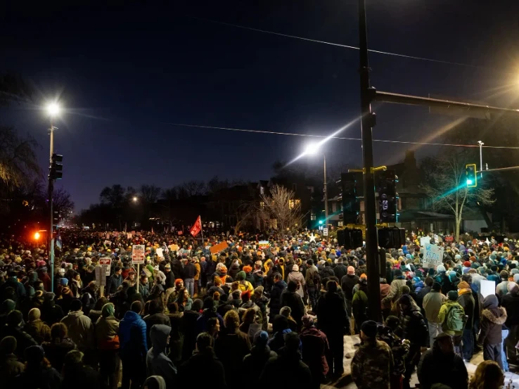 После инцидента, произошедшего 7 января в Миннеаполисе, где сотрудники ICE застрелили 37-летнюю поэтессу Рене Гуд, улицы заполнились протестующими. На акцию вышли тысячи людей, как сообщает Minnesota Public Radio.